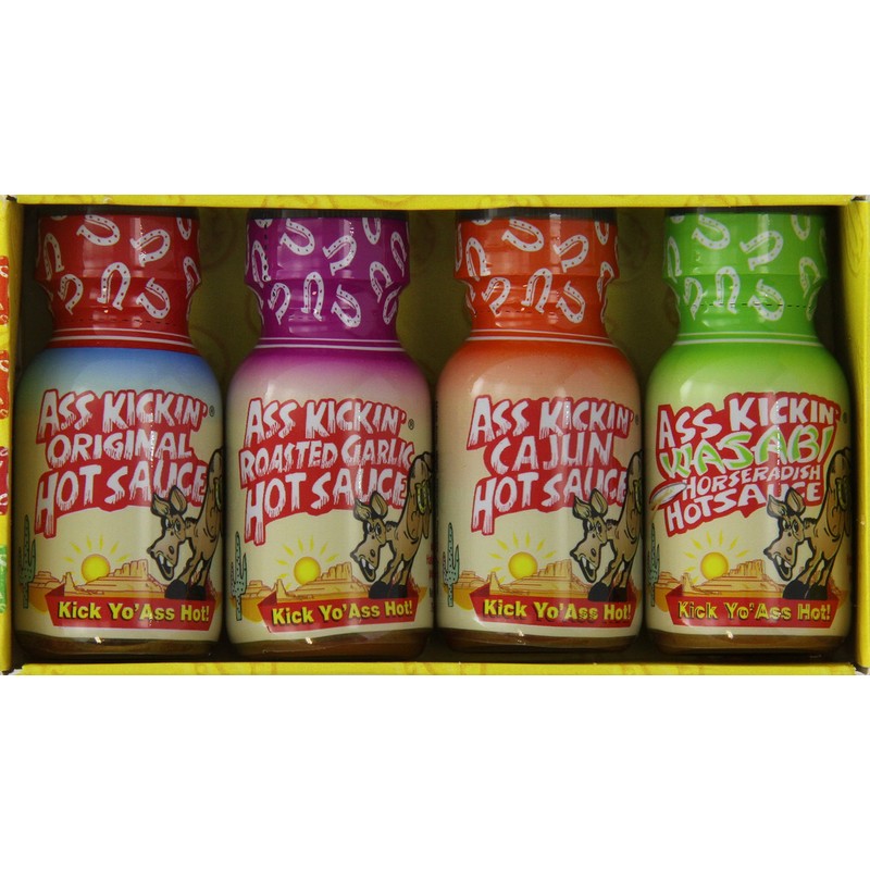 Ass Kickin' Hot Sauce Variety Pack, 4-Count Jars (Pack of 12)