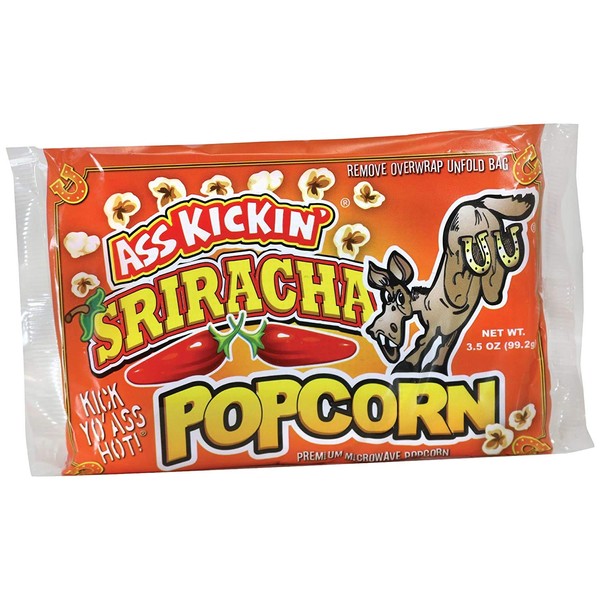 - Ass Kickin’ Sriracha Microwave Popcorn has just the right amount of kick without burning out your taste buds.