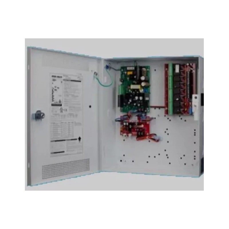Features low battery cutoff which protects batteries from deep discharge, dedicated fast charger which prolongs battery life, and enhanced surge immunity for input/output protection. LockSafe keeps locks cooler by providing a separate, dedicated battery charging circuit. OutSmart technology provides dual-color LED visual notification which prevents applying incorrect voltages to the locking devices: (Green: 12 V | Blue: 24 V). Auxiliary output is Class 2, power limited and mix and match UL listing. Instant auto-switch to battery on AC loss. Finally, it features Integrated Fire Alarm Interface (FAI) which allows main output shutdown or disconnect on a per output basis when using an R8 output module. Network ready with optional Netlink