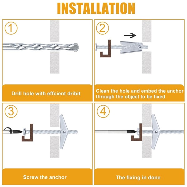 - Heavy Duty Toggle Bolts: Toggle anchors are suitable for hanging shelves, mirrors, towel rack, clothes rack, and other heavy items on dry wall.