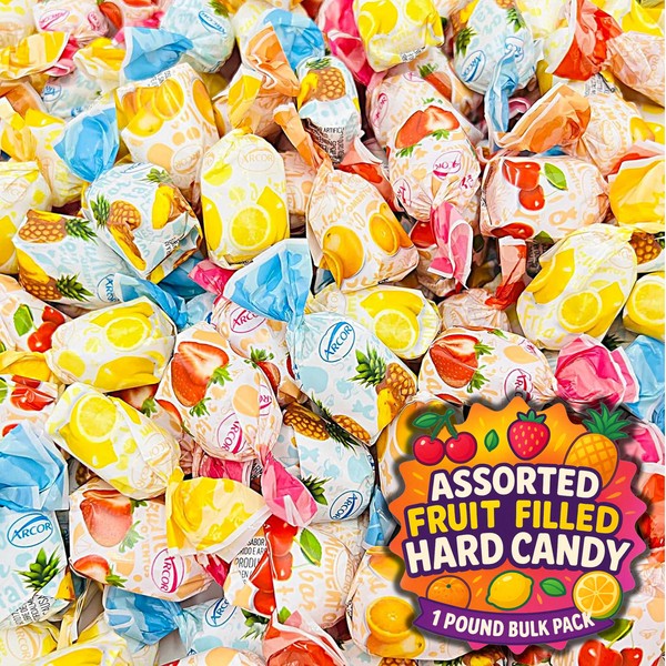 Assorted Fruit Filled Hard Candy - 1 Pound Bulk Pack (About 75 Count) - Individually Wrapped Assorted Fruit Candies - Classic Flavors of Old Fashioned Treat