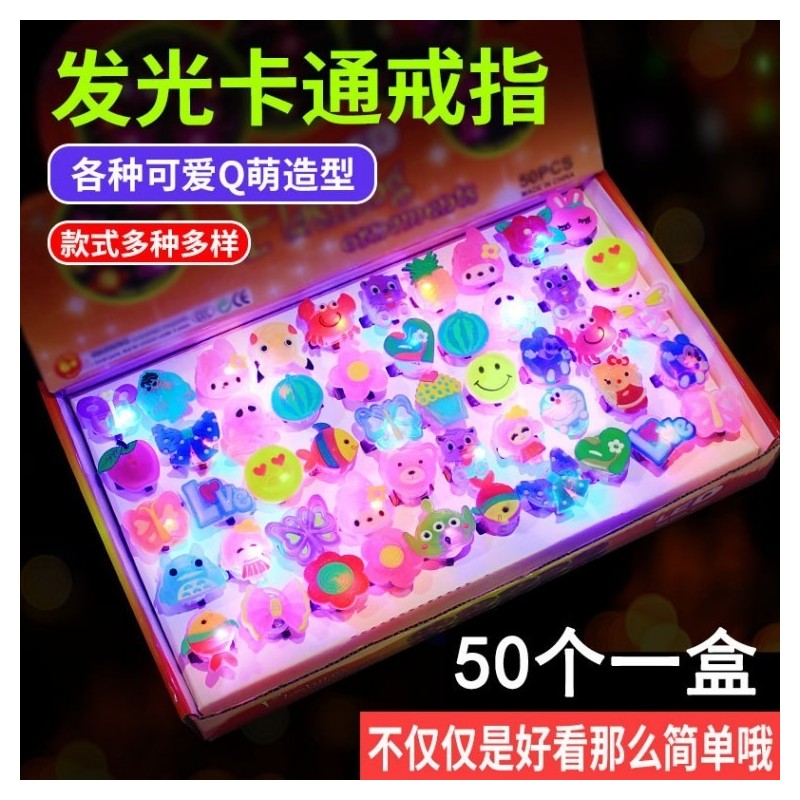 Assorted Light-Up Rings (Halloween, Christmas, Fruit) Free Size / Cartoon Glow Ring 50ea
