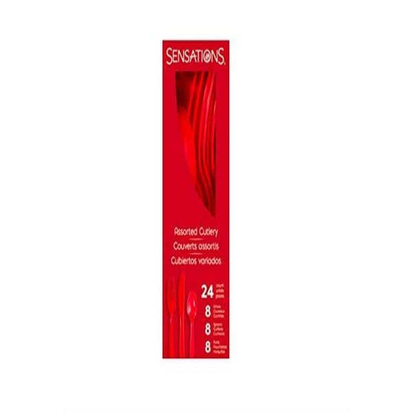Assorted Red Plastic Boxed Cutlery Set- 24 pcs.