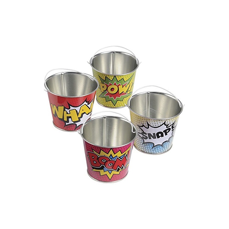 Assorted Super Hero Comic Book Theme Mini Metal Party Buckets (12)