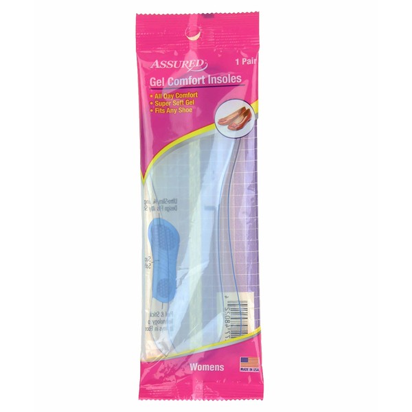 Assured Womens Gel Comfort Insoles (Clear Blue, 1 Pack)