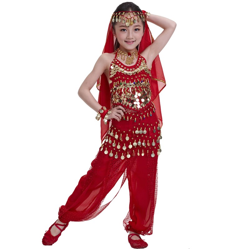 Astage Disfraz de princesa india para niños con adornos de Bollywood, Rojo, Medium