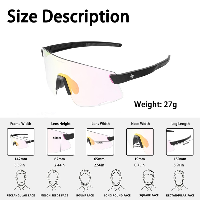 - 【All-Day Comfort Fit】Enhanced with thick silicone nose pads and anti-slip legs, these sunglasses provide a secure, pressure-free fit for all face shapes. The adjustable design keeps them stable during intense activities, boosting your sports performance.