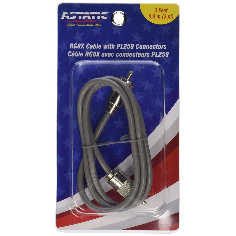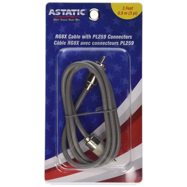 Astatic 302-10268 Grey 3' CBL with Pl259 Connectors