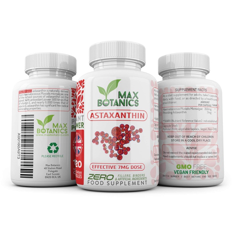 Astaxanthin | Haematococcus Pluvialis | 120 Capsules | Pure and Bioavailable | Effective 7mg per Capsule | No Additives | Vegan | UK Made | GMP (120 Capsule Bottle)