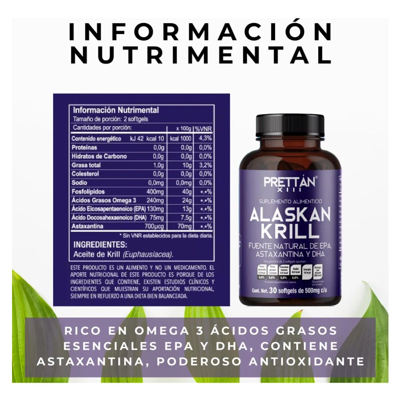 Astaxantina + Dha + Epa Alaskan Krill Prettan 30 Caps 500mg