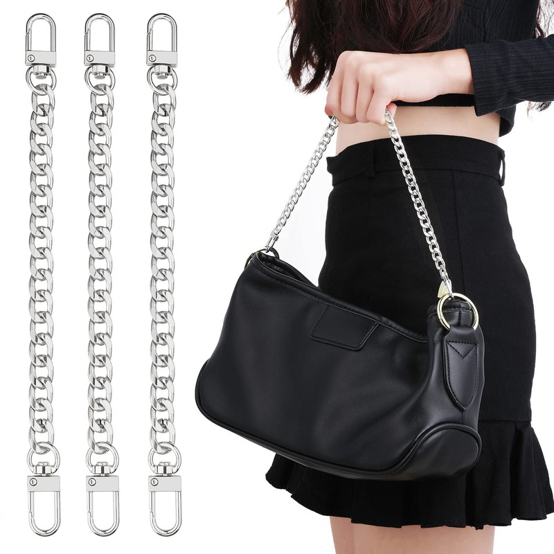 ASTER Pack of 3 Bag Chain Metal 20 cm DIY Handbag Purse Strap Extender with Metal Buckles for Purse, Handbags, Purse, Clutch, Shoulder Bag, Replacement Strap (Silver)