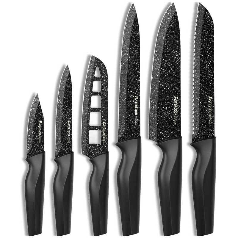 Astercook Knife Set, 6 Piece Kitchen Knife Set, Aesthetic Blade Knife Block Stainless Steel