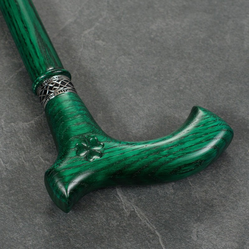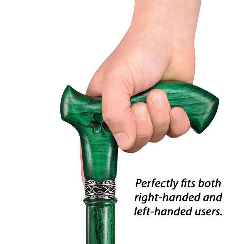 Asterom Irish Walking Cane for Men and Women - Handmade, Ergonomic, Wooden - Irish Walking Stick, Shamrock, Green Walking Canes - 36 Inch