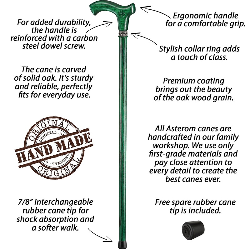 - HIGH-QUALITY HANDMADE - Our stylish wood canes are hand-carved by skilled artisans of solid oak with beautiful wood grain, smooth-sanded. Our coating quality standards are similar to standards used for wooden interior trimming in premium cars!