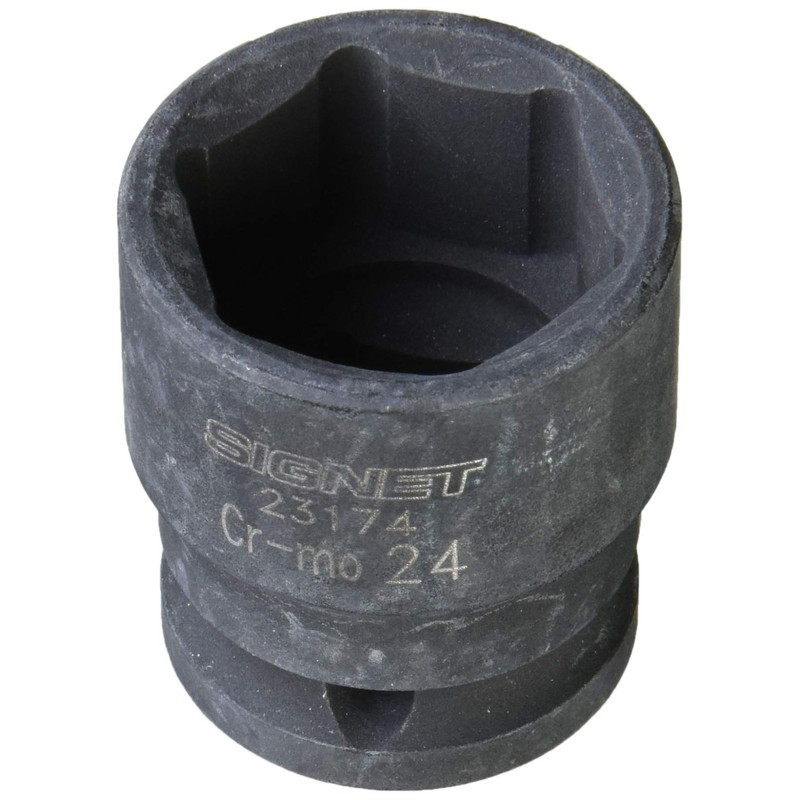 Impact sockets with 1/2" drive drive for excellent cost performance. Size: 0.9 inches (24 mm); Total Length: 1.5 inches (38.5 mm).