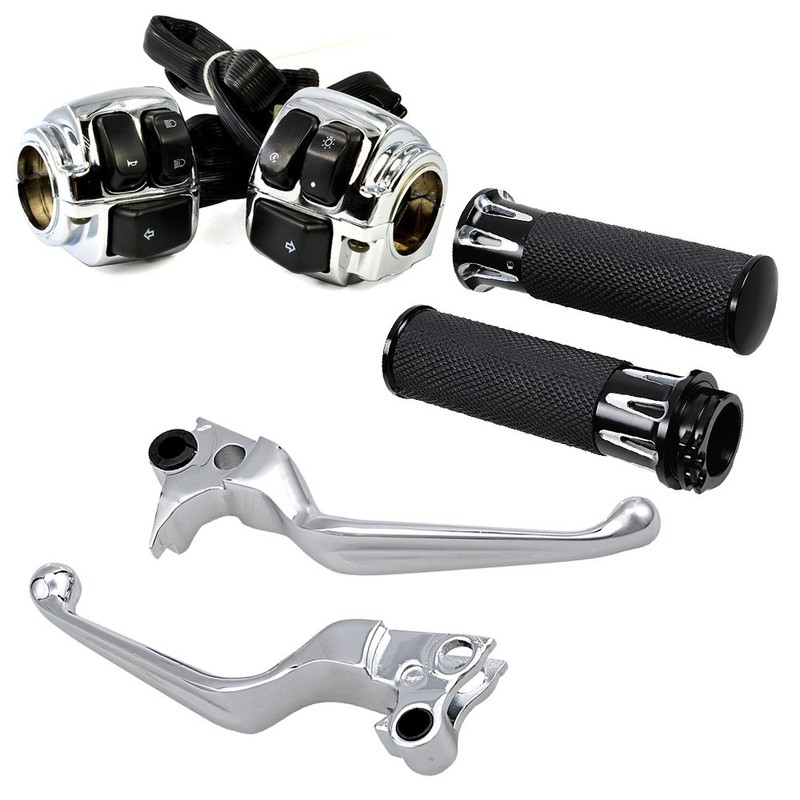 Astra Depot Motorcycle 1" Handlebar Hand Grips & Chrome Switch Controls Brake Levers Clutch Compatible with 1997-2012 Harley