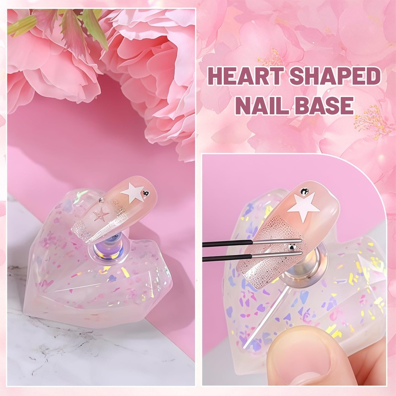 AstraGlam Nagelständer Set 2 Stück mit Herzförmiger Basis und 96 Klebepads, Magnetischer Nagelhalter für Nägel Selber Machen, Acryl Nägel, Nageldesign Tisch, Nail Tools
