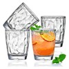 - MODERN DESIGN This 4 piece drinking glass set is presented in elegant acrylic with a diamond-shaped surface texture that adds modern elegance to your clear glass collection and dining table.
