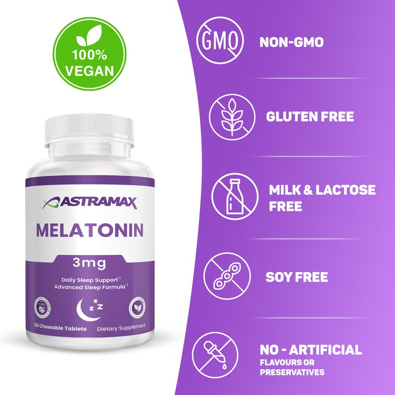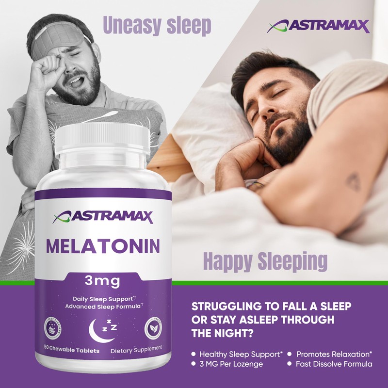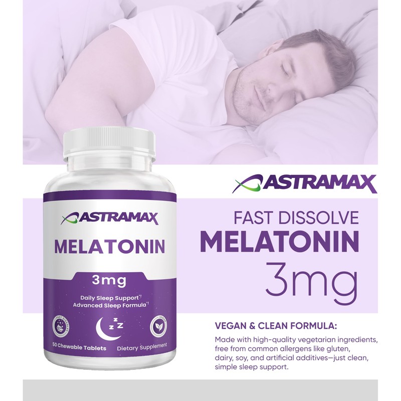 Astramax Astramax Melatonin 3mg | 50 Fast-Dissolve Chewable Tablets | Nighttime Sleep Support for Adults | Vegan & Non-GMO | 100% Drug-Free Formula | Non-Habit Forming