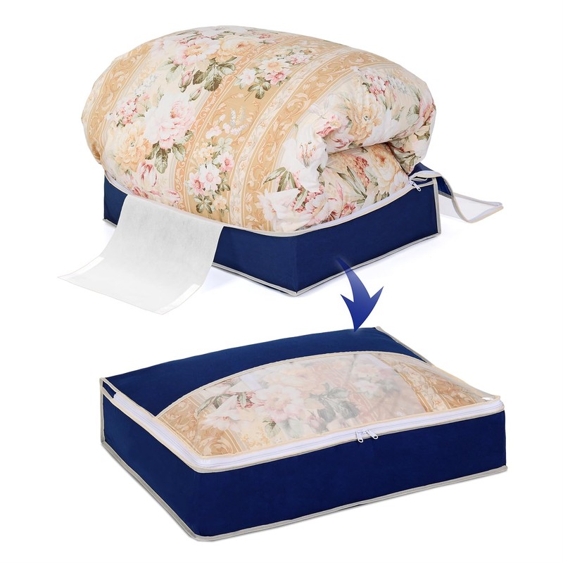 - Product Specifications: Size (W x D x H): Approx. 25.6 x 19.7 x 5.9 in (65 x 50 x 15 cm); Color: Navy; Contents: 1 piece; Storage Estimate: 1 Single sized feather duvet; Material: Polypropylene, Polyethylene