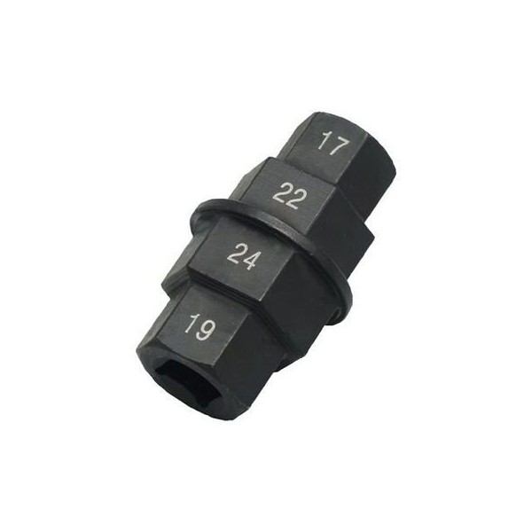 - One side can be rotated with a 3/8 (9.5 sq) insert, and the other side can be turned with 0.7 inch (17 mm) or 0.9 inch (22 mm) sockets