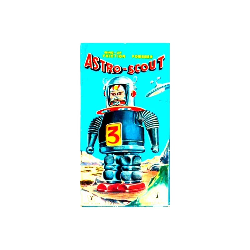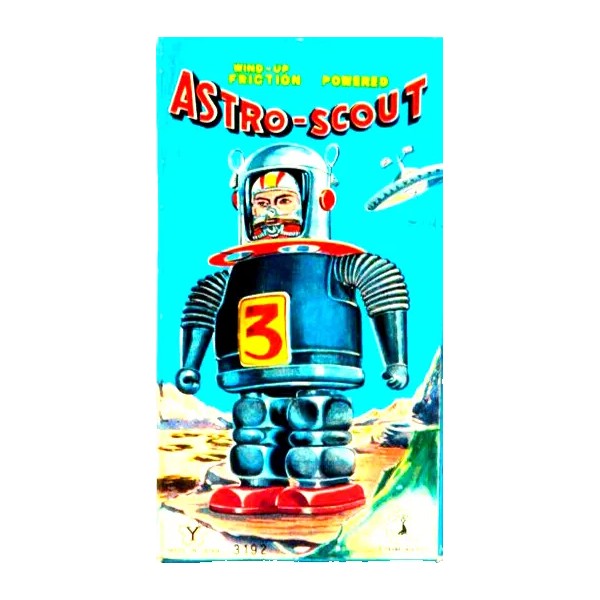 Astro Scout Robot Space Frictrion Powered Toy on Fridge Magnet Vintage