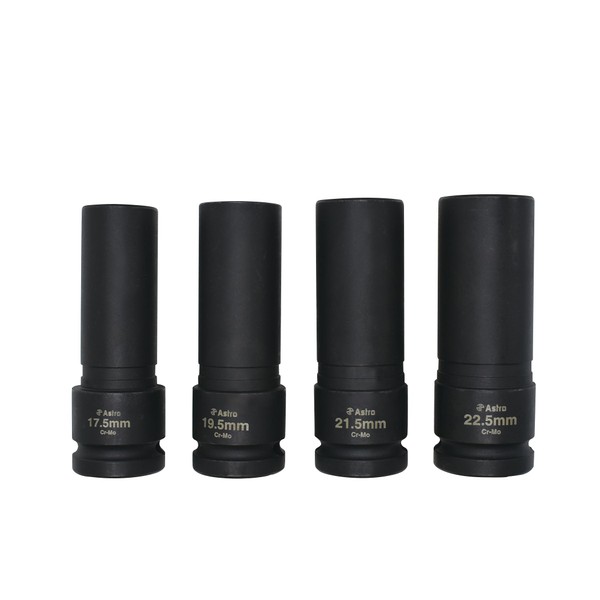 Astro Tools 78204 4-Piece 1/2" Drive 1/2 Size Thin Wall Lug Nut Socket Set - 17.5-22.5mm