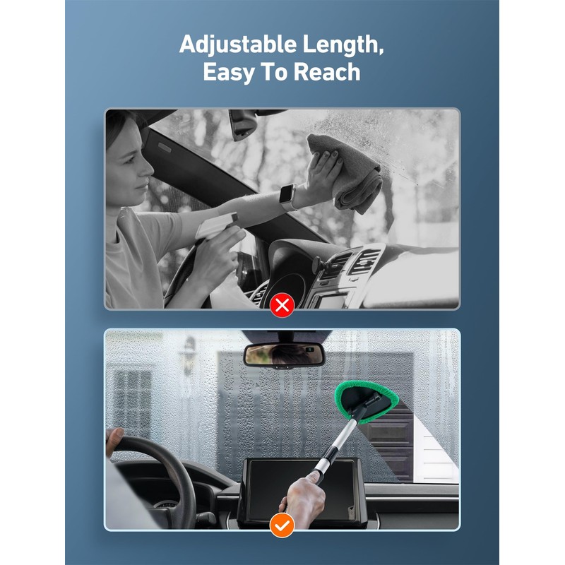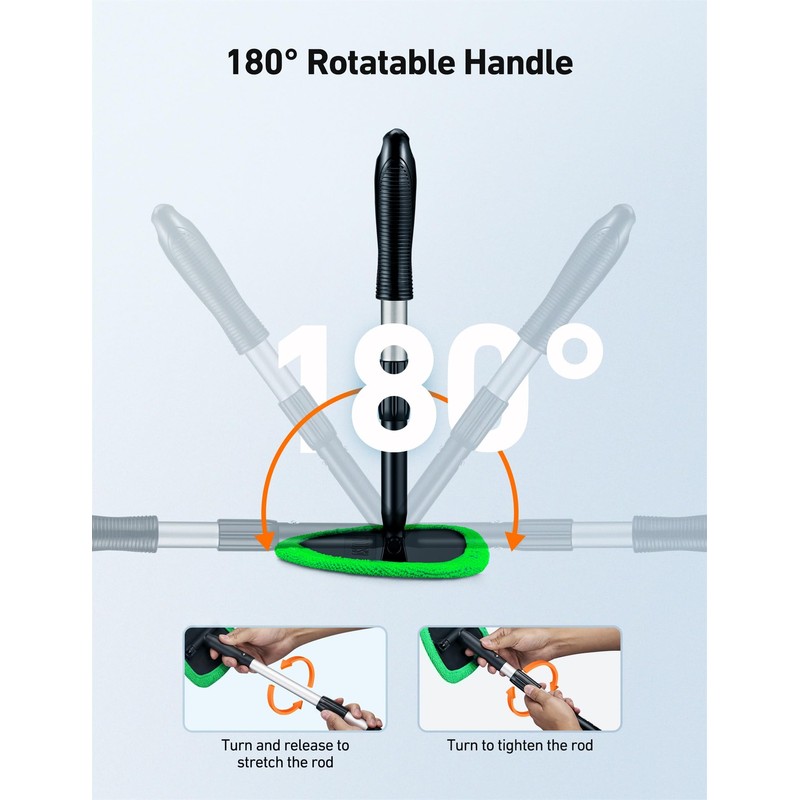 - Fast and Easy to Clean Auto Windshield: Clean car window interiors and exteriors without straining. No more hurting your back. With the extra long extension handlelonger than others and bigger pivoting head getting to those hard-to-reach car window bases is simple.The twist lock on the handle is tight and it stays extended all the way.