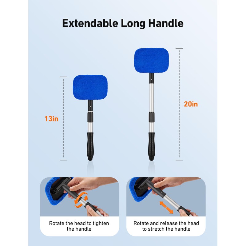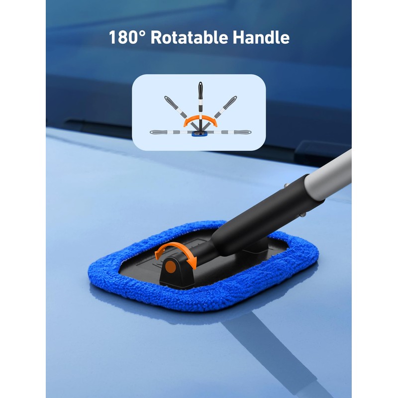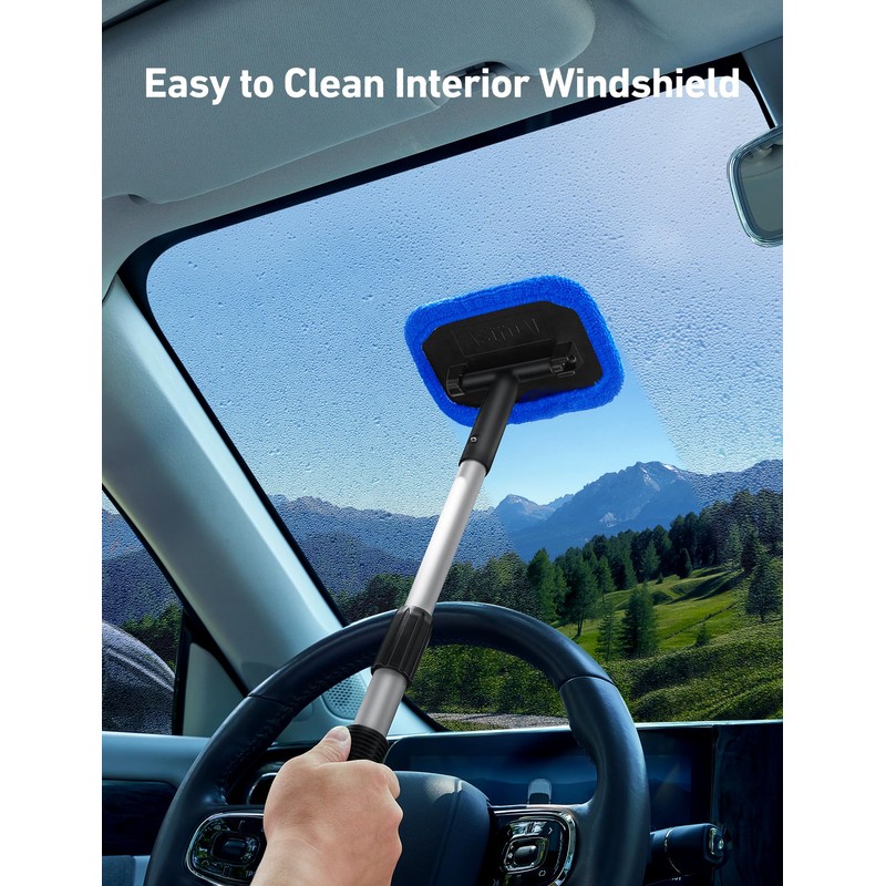 - Fast and Easy to Clean Auto Windshield: Clean car window interiors and exteriors without straining. No more hurting your back. With the extra long extension handle and pivoting head getting to those hard-to-reach car window bases is simple