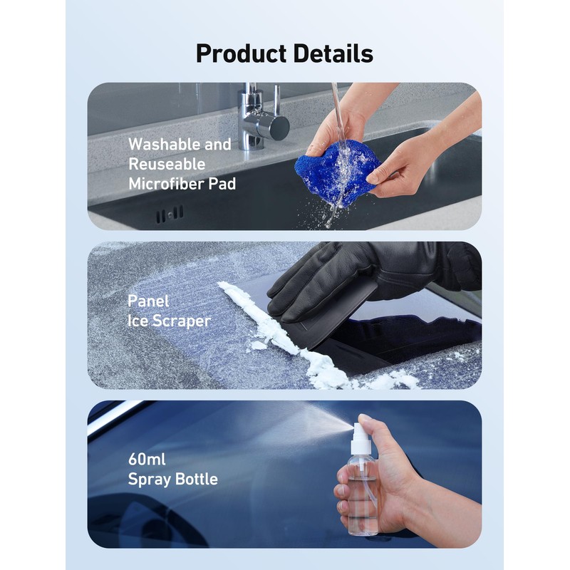 - Intimate Combination: The car windshield cleaner with a detachable handle, can be disassembled into halves for storage. It comes with 4 pcs washer towels and a 60ml spray bottles