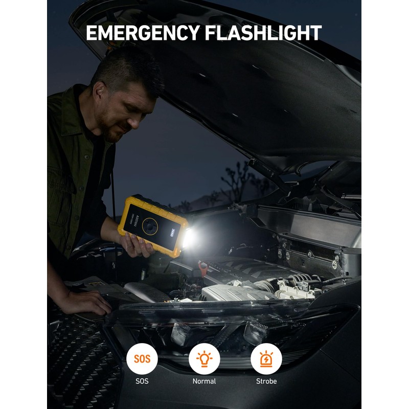 - ALL-IN-ONE PORTABLE JUMP STARTER:Say goodbye to old, bulky jump-start battery packs! The AstroAI Lithium Battery Jump Starter is more lightweight and portable with 6 practical functions to meet all your needs, including car emergency jumpstarting, air compressor, 3 light modes (flashlight, SOS warning, strobe), and a power bank (USB ports for charging mobile devices)