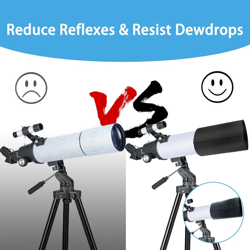 - Flexible velcro fastener provides optimal adaption to diameter of telescope or telephoto lens; place space saving around the tube; good for live in place that has dew often or use scope in the daytime and want to keep stray light out and contrast high