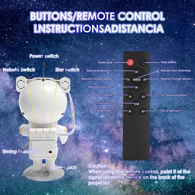 - 2-in-1 Design: This astronaut galaxy projector doubles as a night light and star projector, filling your room with mesmerizing glow-in-the-dark stars and galaxy light effects. 2-in-1 Design: This astronaut galaxy projector doubles as a night light and star projector, filling your room with mesmerizing glow-in-the-dark stars and galaxy light effects.