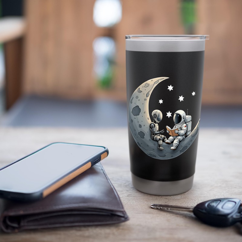 Astronaut Reading book to Robot Cute Cosmic Tech Women Kids Stainless Steel Insulated Tumbler