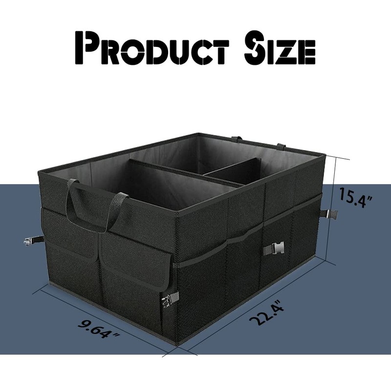 - [Folding car trunk organizer]: The trunk organizer for suv comes with 2 sturdy handles for easy lifting, carrying and pulling out of the car, as well as 2 adjustable straps to prevent slipping. Collapsible the car trunk storage organizer can be folded up when not in use for easy storage in your back or front seat.