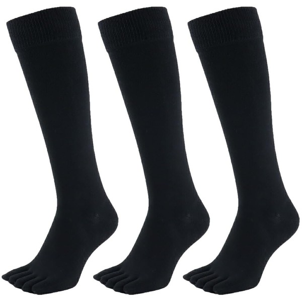 Asuka Men's 5-Toe Socks, 100% Cotton, Thick Sole, Men's High Socks,, Black 3 Pairs