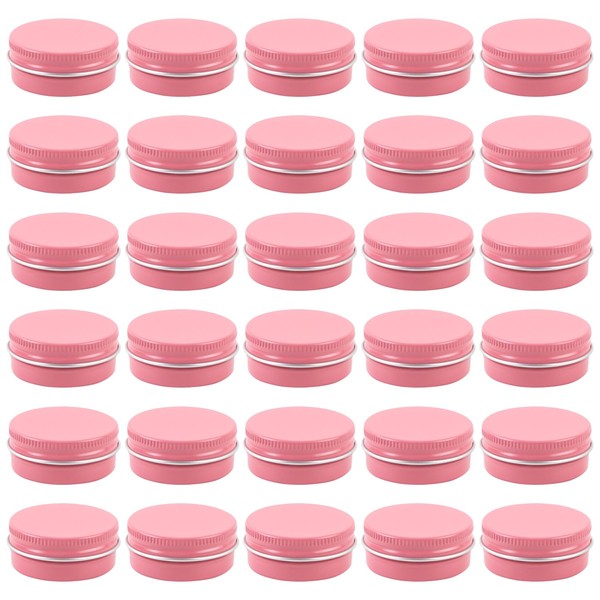 ASUNFO 30 Pcs 0.5 oz Aluminum Tin Cans Round Empty Lip Balm Containers with Screw Lid Pink