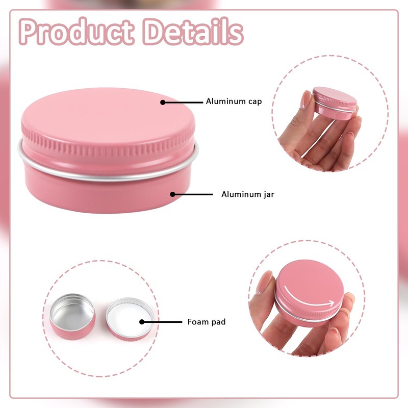 • Size: Each lip balm tin measures about 1.63 x 0.6 inches and the capacity is about 0.5 oz/15 ml