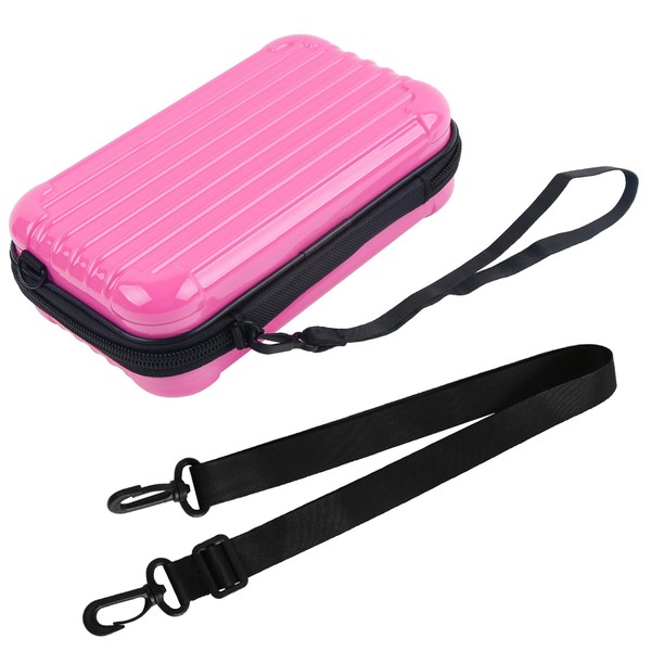 ASUNFO Pink Hard Shell Cosmetics Case Carrying Hard Bag for Toiletry Storage Cross Body Bag with Shoulder Strap for Detachable Grip Rope and Shoulder Strap for Travel