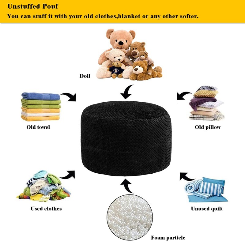 - ⭐【Apertura redonda grande para rellenar con cremalleras dobles】20 x 20 x 12 pulgadas, cuánto relleno se necesita para la otomana? Relleno de espuma viscoelástica triturada de aproximadamente 5 libras, partículas de espuma de aproximadamente 100 L, almohadas de tamaño estándar de aproximadamente 5 a 6 piezas, puedes llenarlo lo que quieras. No hay necesidad de conducir a lugares de reciclaje textil para dejar tela suave doméstica sin usar. Si no tienes idea sobre el relleno, puedes comprar nuestro relleno de puf juntos.