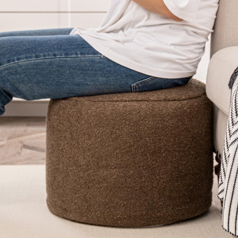 Asuprui Supportive Boucle Ottoman Foot Rest Elevate Your Living Room Decor with Lightweight Pouf Ottoman Filler and Comfort Cover Modern Foam Stuffed Poof Perfect to Rest Your Feet (Dark Coffee)