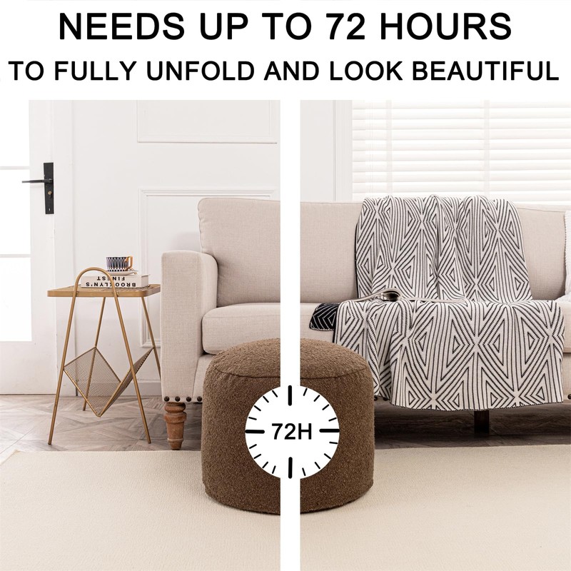 - 【No Assembly Required】There is no need to assemble.Vacuum packing, Just take out and wait for 48 hours, it will fully rebound to its full size.if still did not return to the full size,please just adjust the pouf cover and rub the foam filler and wait more time.Achieve optimal foam hardness within 7 days for enduring support.