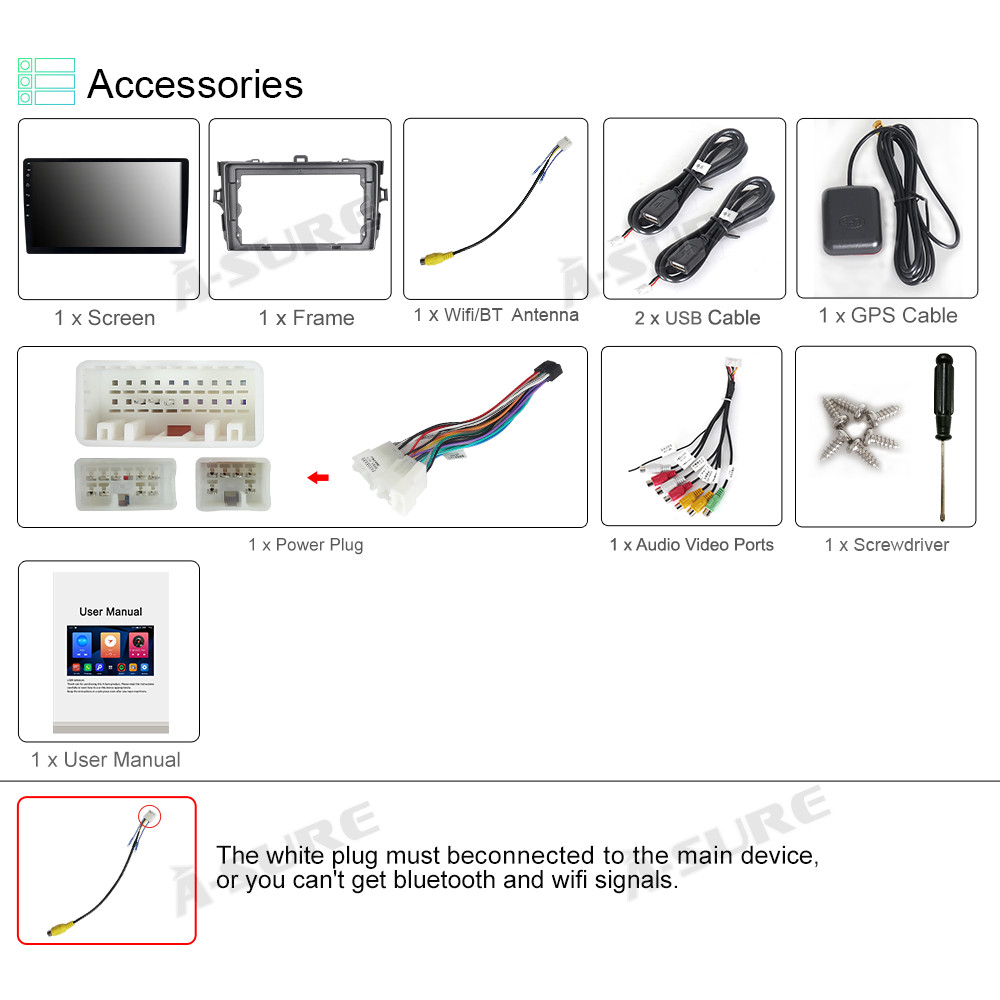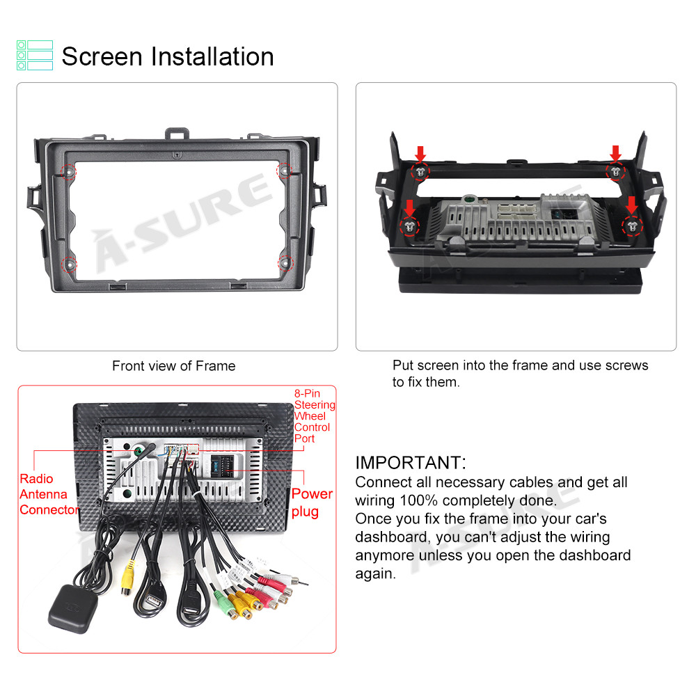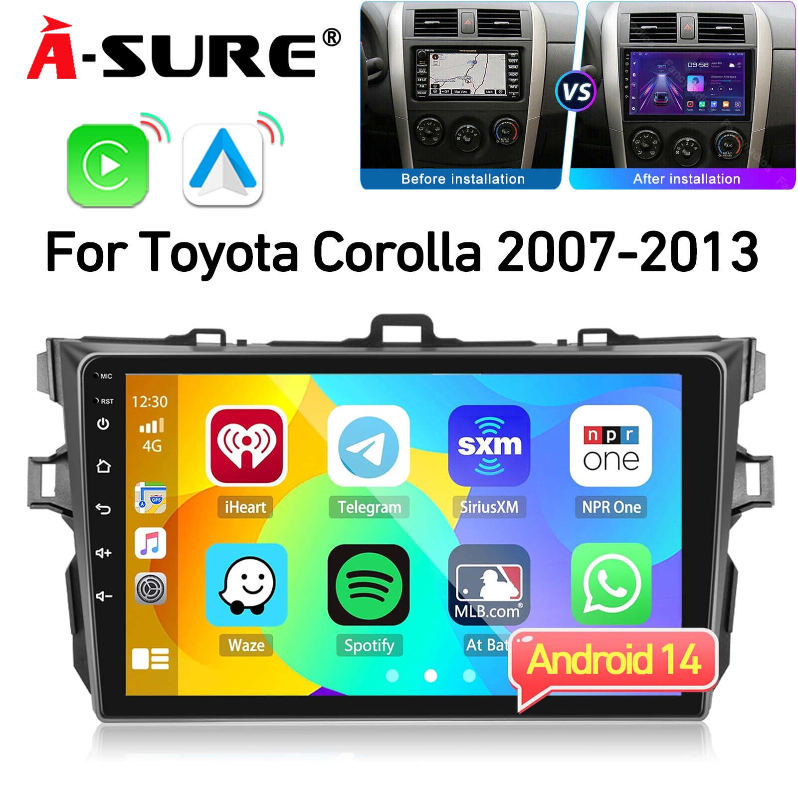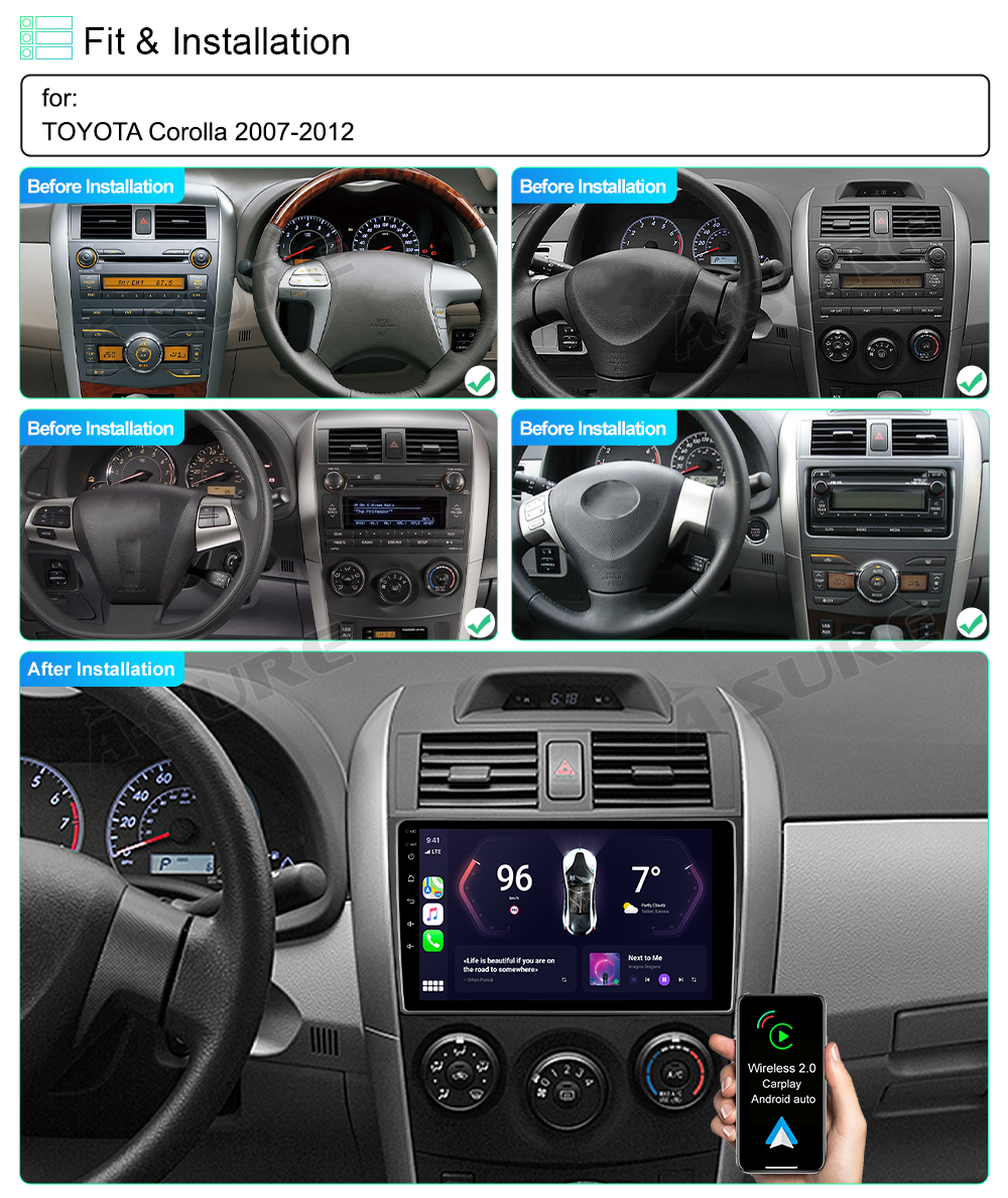ASURE For Toyota Corolla 2007-2013 Wireless Apple Carplay Android 14 Car Stereo Radio