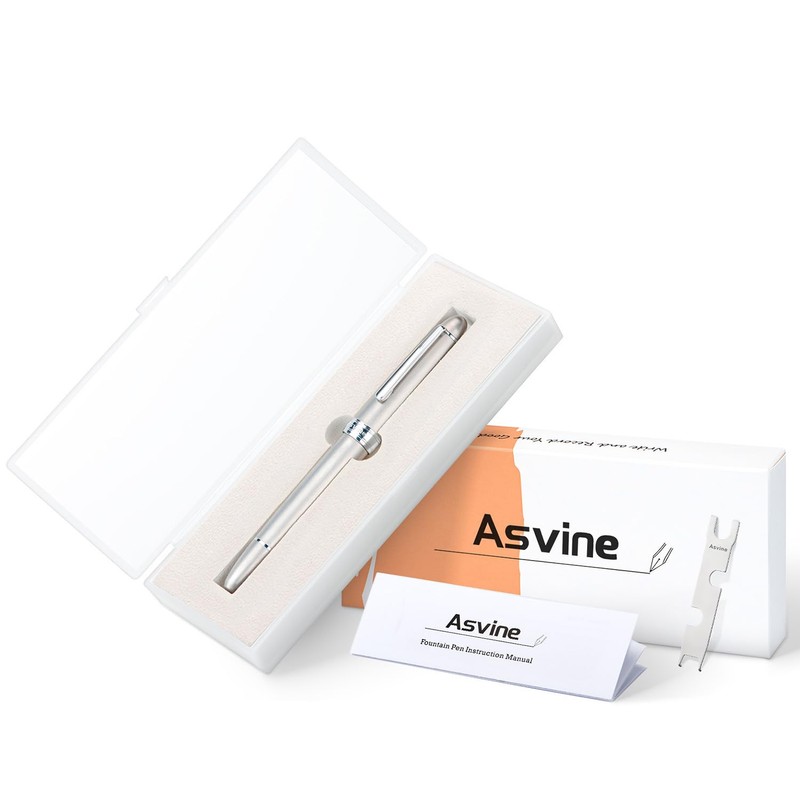 Asvine J16 Brushed Titanium Fountain Pen Jowo Broad Nib Piston Filling, Ink Window, Wrench & Box