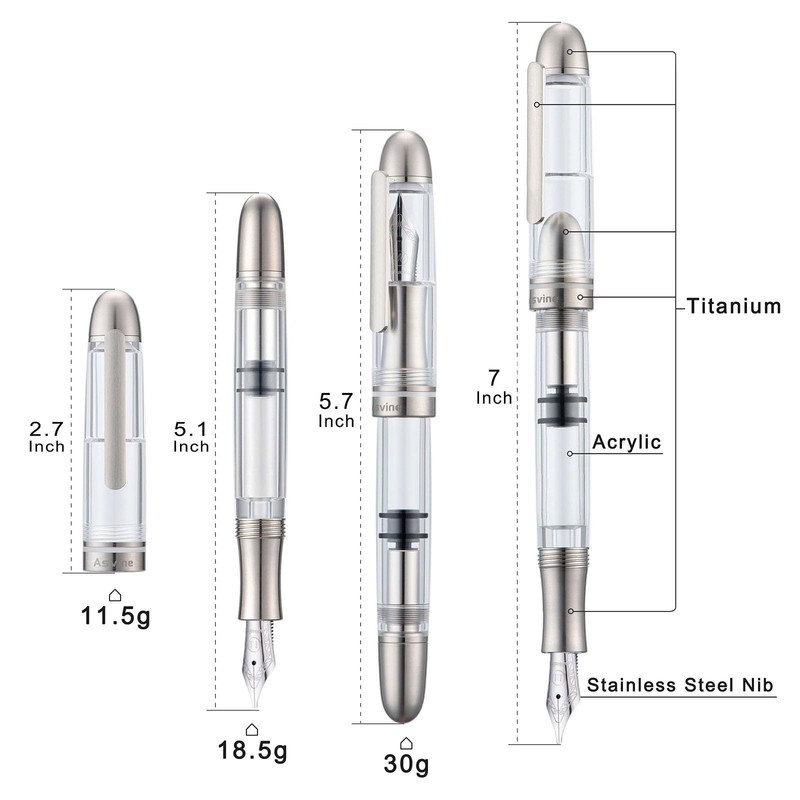 Asvine P36 Titanium Fountain Pen Piston Filling, Stub Nib 1.1mm Calligraphy A...