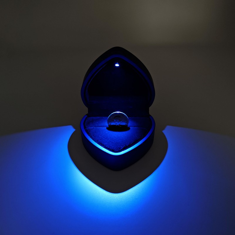 - STUNNING HEART-SHAPED RING BOX WITH LED LIGHT: Our elegant blue ring box is designed in a heart shape, complete with beautiful lighting to enhance the presentation of the sixpence.