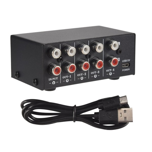 Aswalling 1 in 4 Out Stereo Signal Source Splitter Audio Frequency Signal Distribute Device Non Consumption Output Interface
