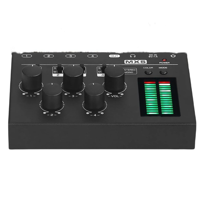 Aswalling MX5 Ultra Low Noise 4-Channel Stereo Audio Mixer Mini Stereo/Mono 6.35/3.5mm for Club/Studio Bar