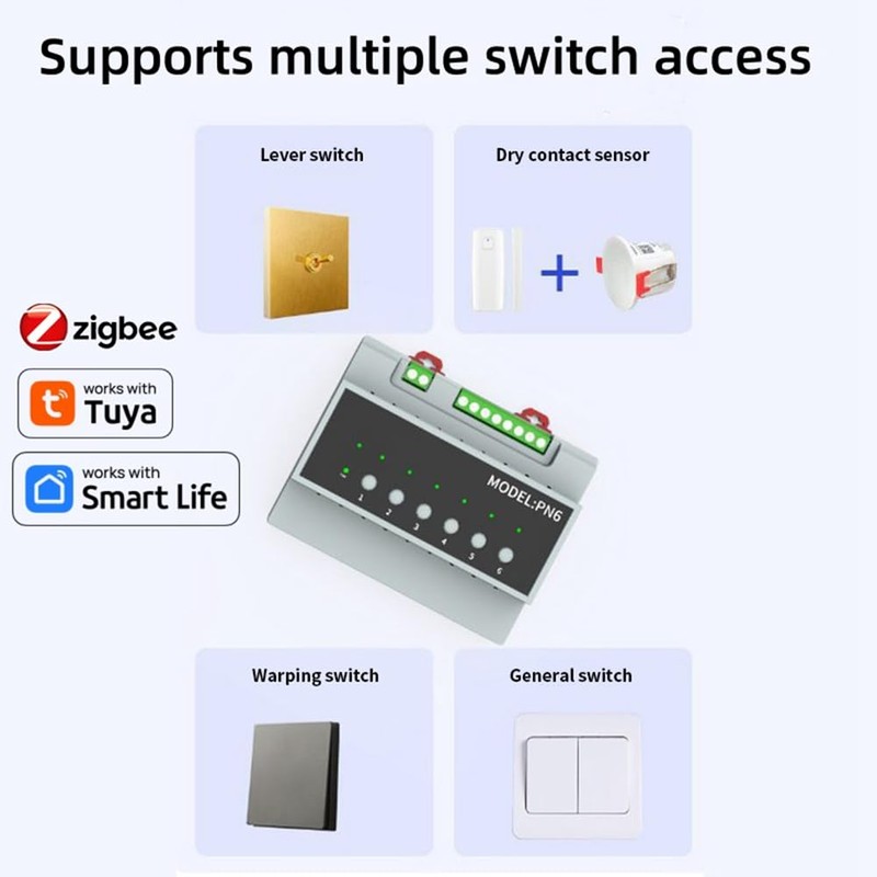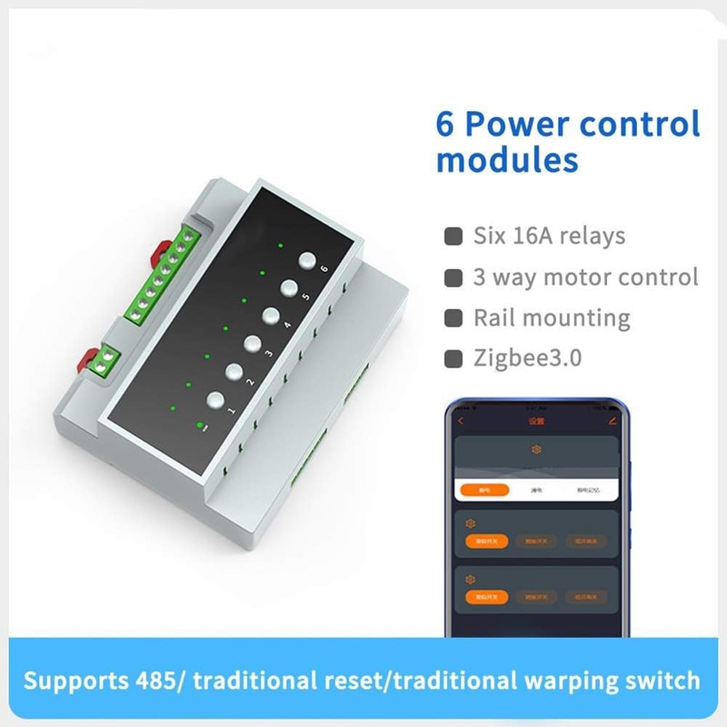 Aswalling Tuya Smart Zigbee 6CH Relay Switch Module Remote Control Appliance Control Module Supports 3-Way Motor Control