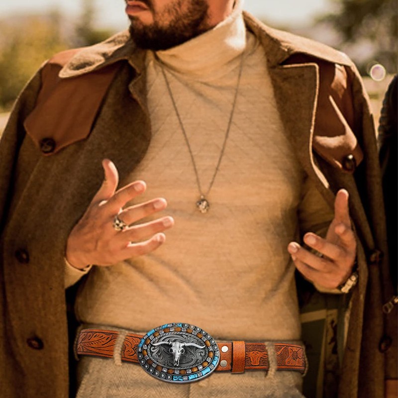 - 【Fine Workmanship】Our cowboy western belts is made of quality leather, long horn bull head engraved decoration,classic and delicate. And this cool western belt buckle is made of premium alloy,sturdy and durable,not easy to deform and fade,ensuring long-term use. the buckle is detachable and replaceable, allowing you to wear different buckles depending on your outfit each day.